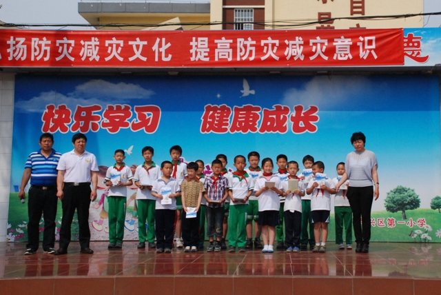 为提高学生的防震减灾意识,增强抵御地震灾害的能力,在第四个防灾减灾日宣传周期间,大兴区地震局到大兴区第一小学开展防震减灾宣传进校园活动。同时授予大兴区第一小学“防震减灾科普示范学校”光荣称号,并举行了授牌仪式。活动期间,大兴区地震局发放宣传笔袋500个、围裙300个、扇子500个、《防震避震简明手册》1000册。